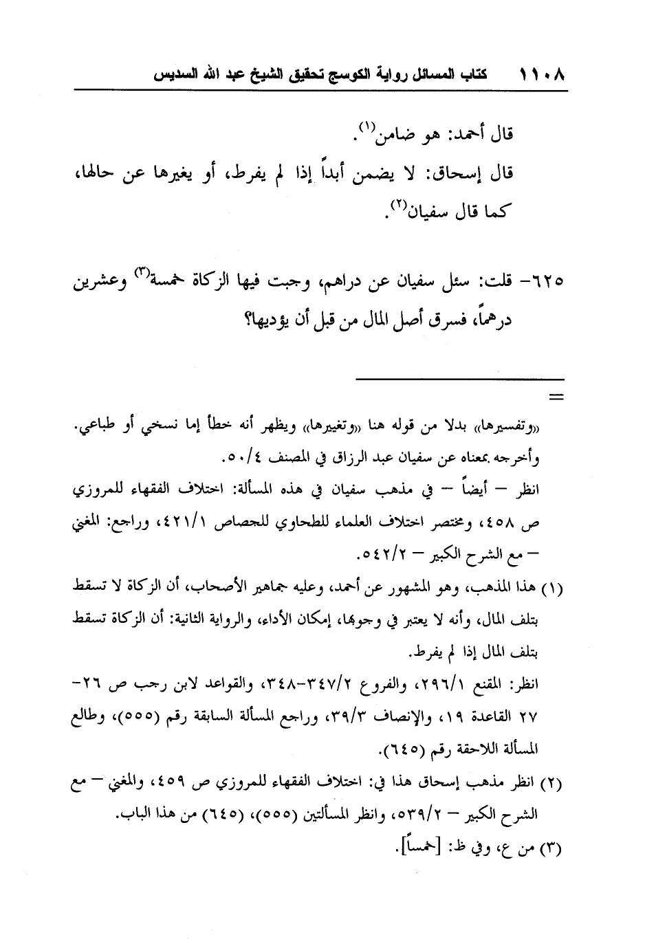[625 -] قلت: سئل سفيان عن دراهم، وجبت فيها الزكاة خمسة3 وعشرين درهماً، فسرق أصل المال من قبل أن يؤديها؟