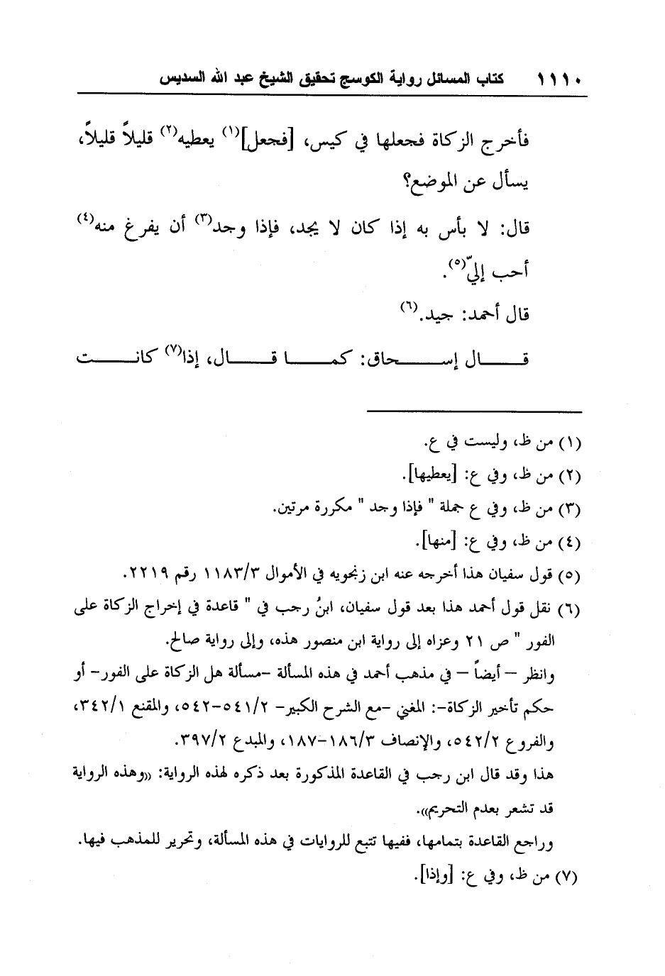6نقل قول أحمد هذا بعد قول سفيان، ابنُ رجب في " قاعدة في إخراج الزكاة على الفور " ص 21 وعزاه إلى رواية ابن منصور هذه، وإلى رواية صالح.