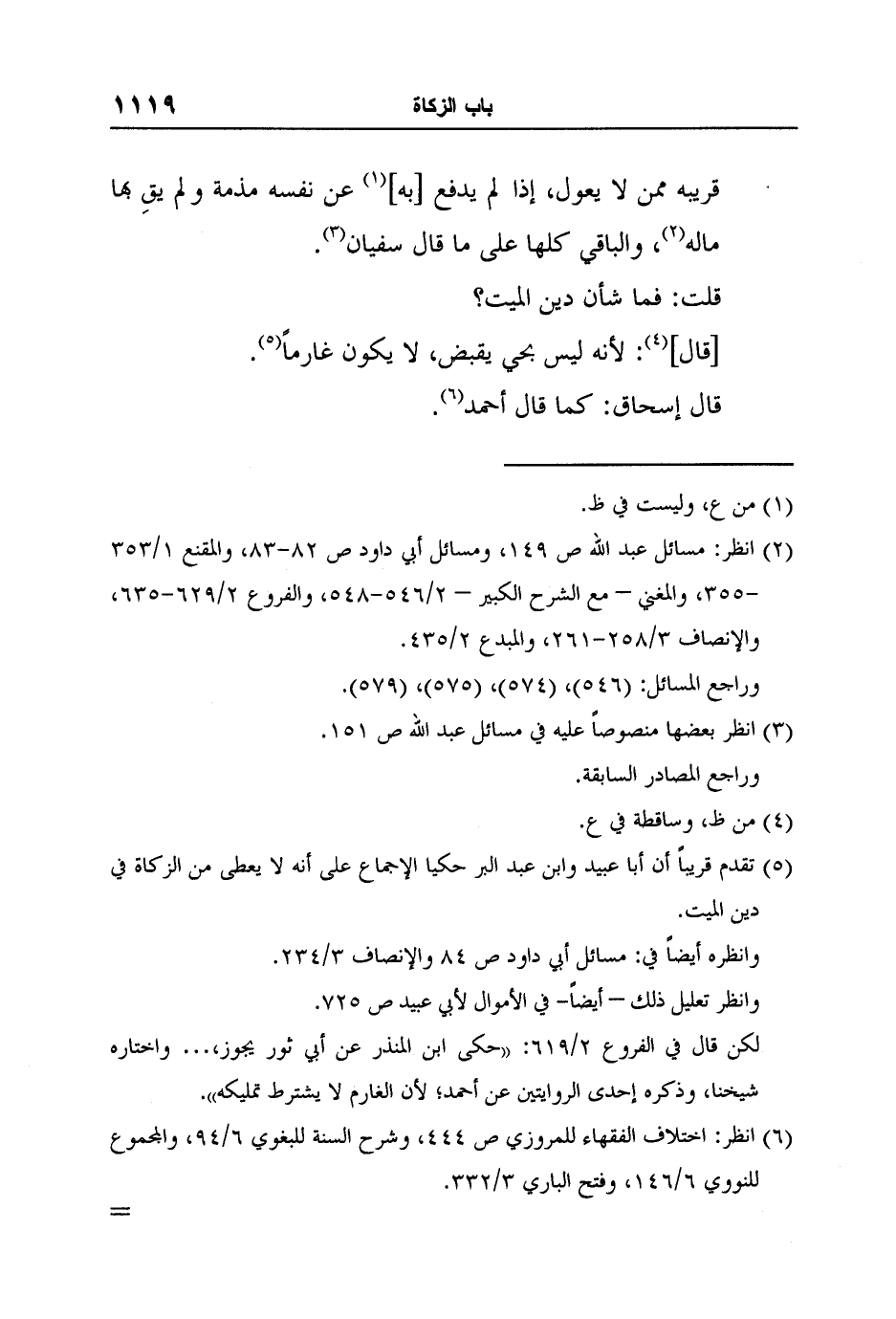5تقدم قريباً أن أبا عبيد وابن عبد البر حكيا الإجماع على أنه لا يعطى من الزكاة في دين الميت.