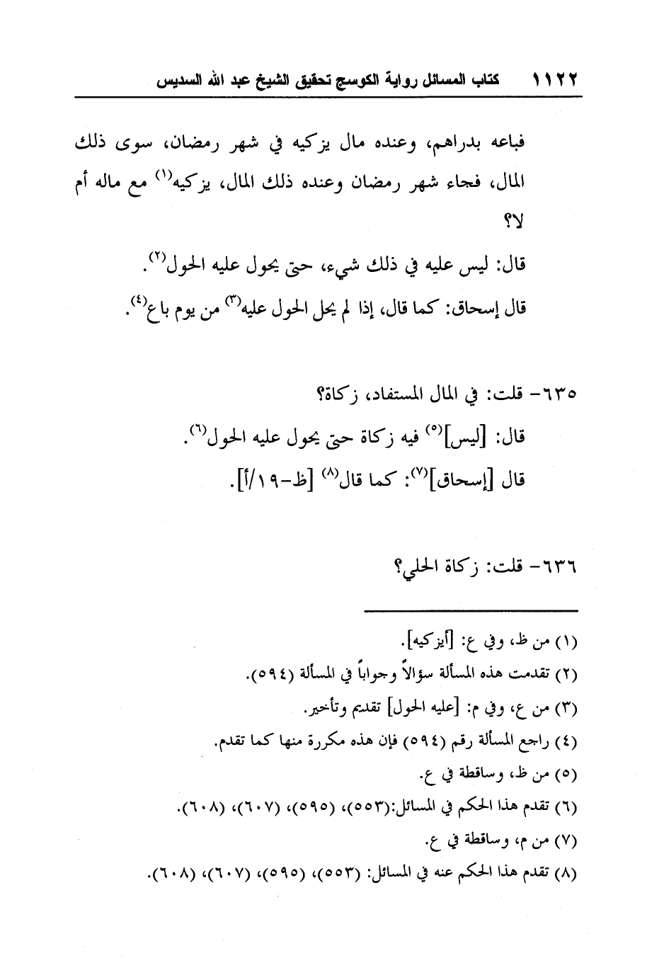 6تقدم هذا الحكم في المسائل: (553) ، (595) ، (607) ، (608) .