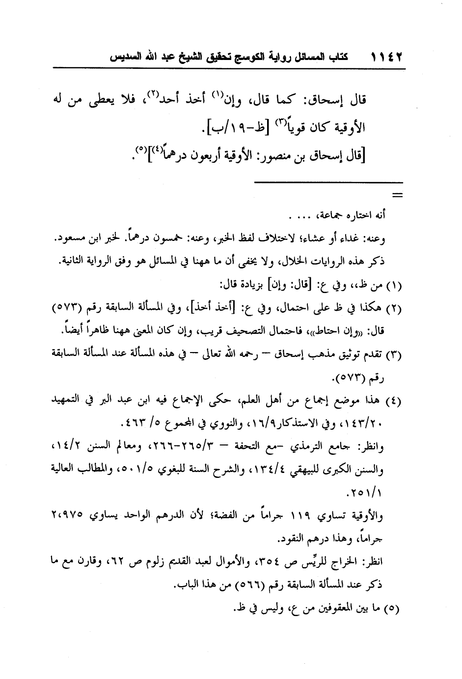 3تقدم توثيق مذهب إسحاق - رحمه الله تعالى - في هذه المسألة عند المسألة السابقة رقم (573) .