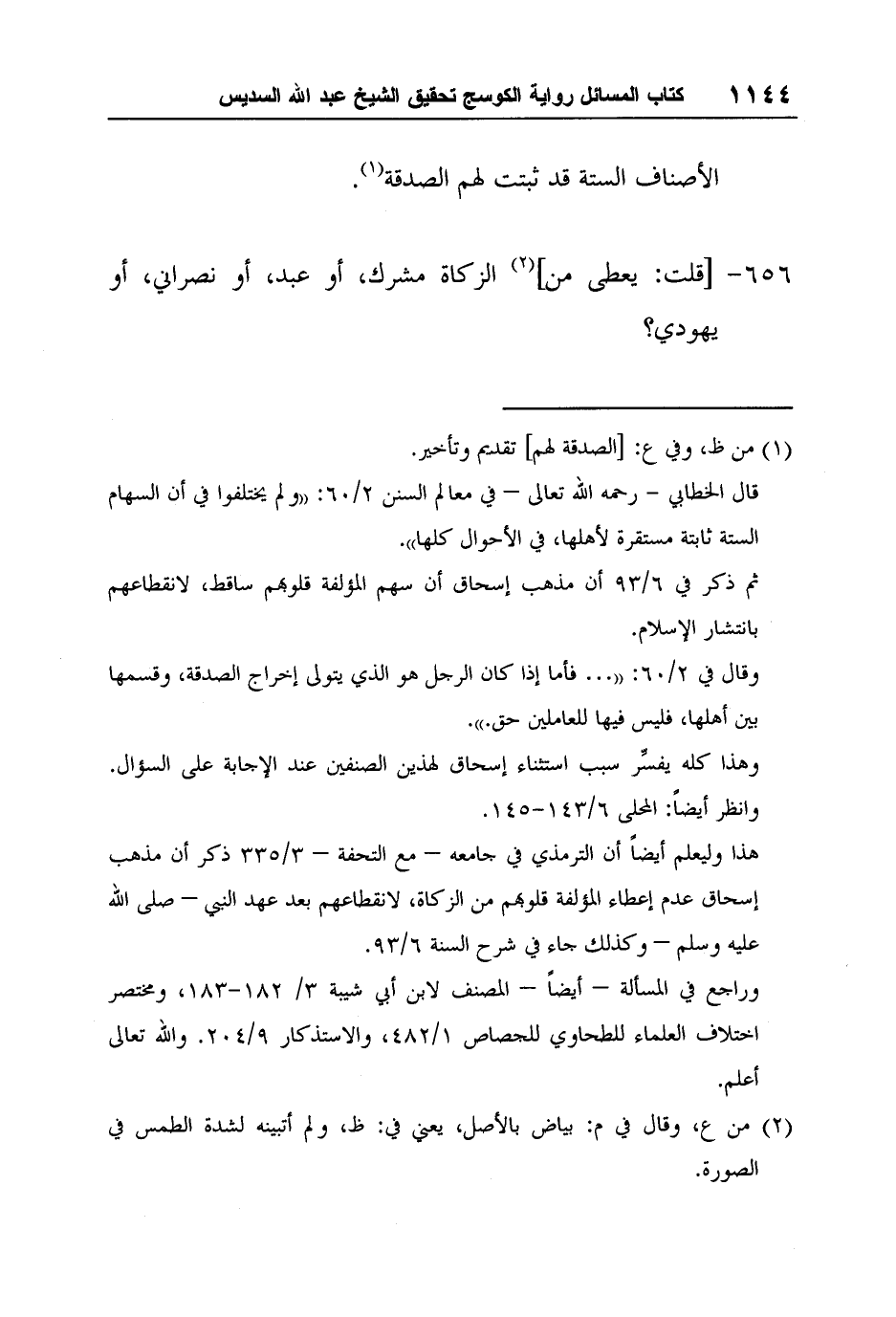 [656 -] [قلت: يعطى من] 2 الزكاة مشرك، أو عبد، أو نصراني، أو يهودي؟