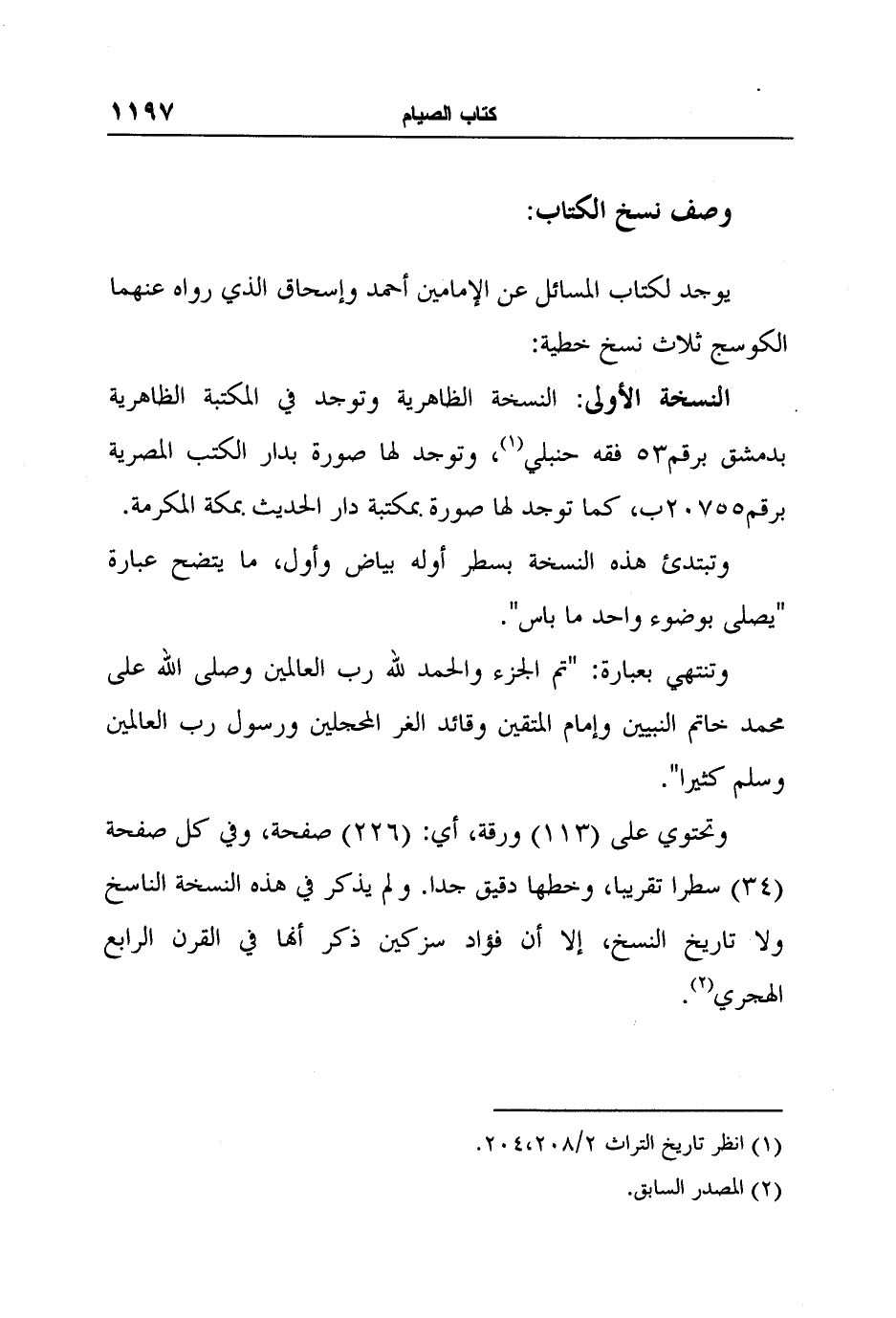 وصف نسخ الكتاب (كتاب الصيام) :