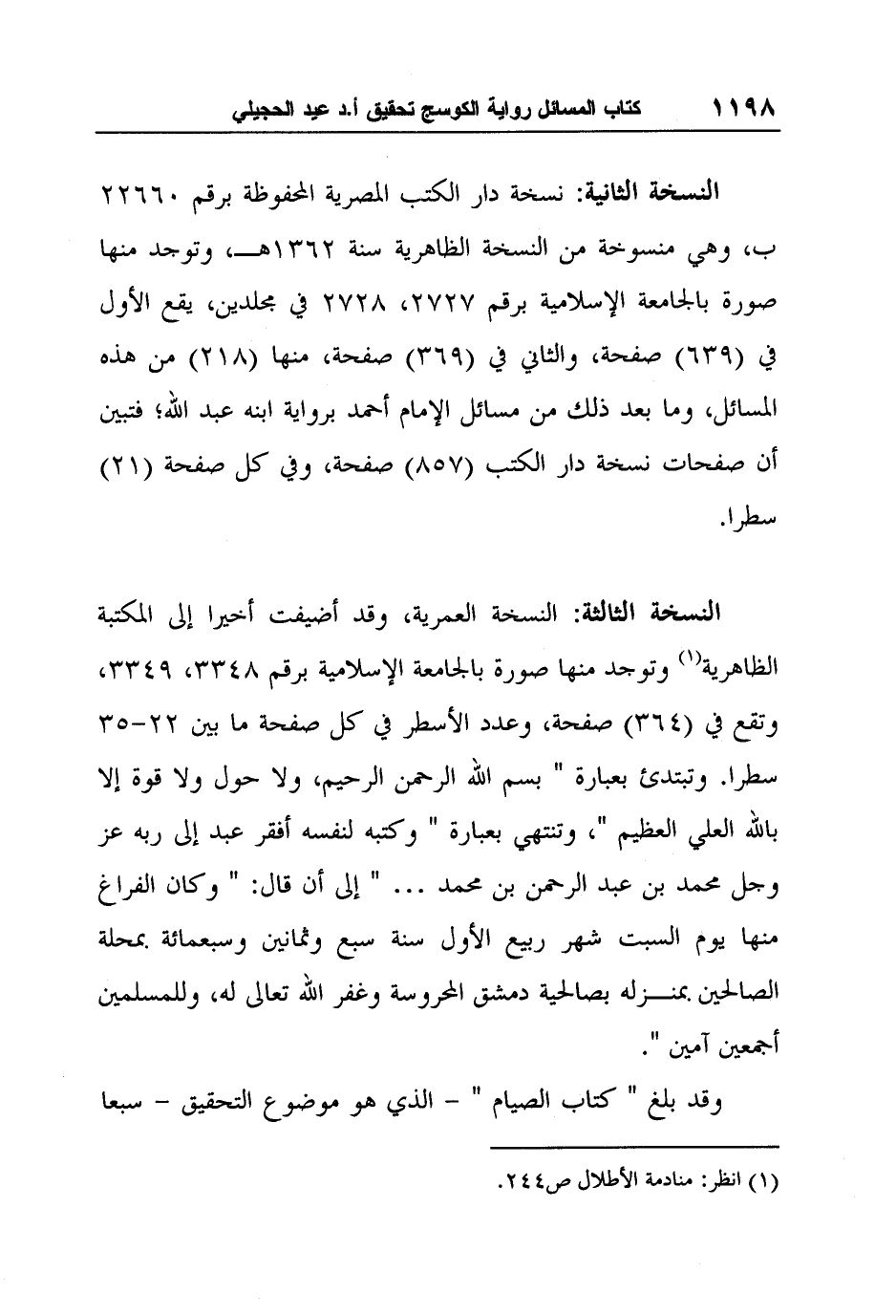 وقد بلغ " كتاب الصيام " - الذي هو موضوع التحقيق - سبعاً