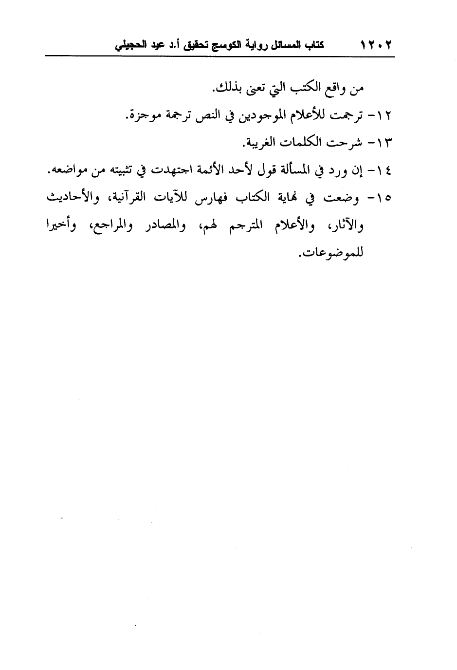 15- وضعت في نهاية الكتاب فهارس للآيات القرآنية، والأحاديث والآثار، والأعلام المترجم لهم، والمصادر والمراجع، وأخيراً للموضوعات