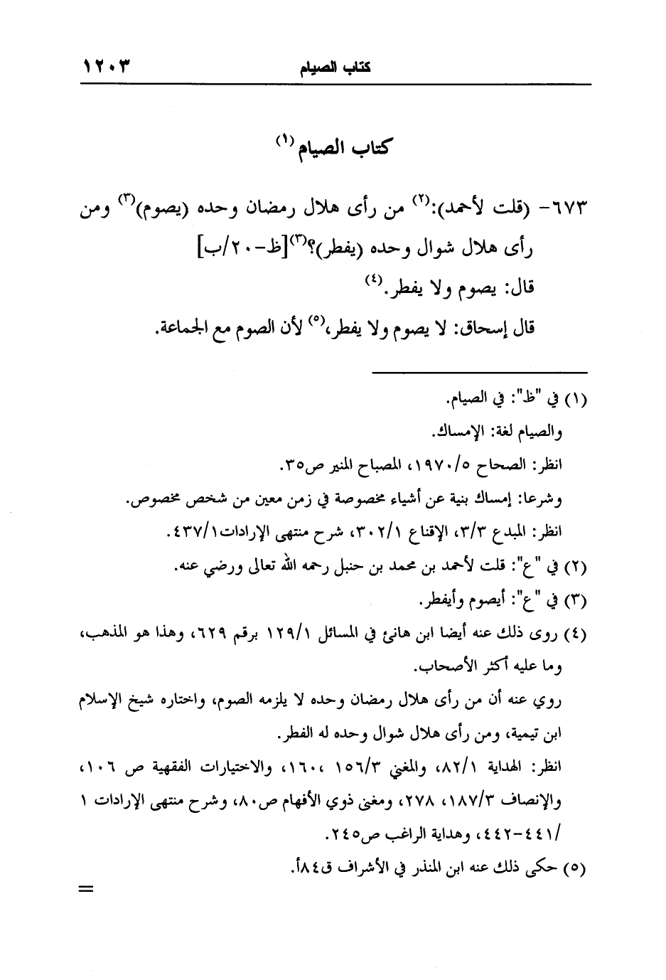 [673-] (قلت لأحمد) :2 من رأى هلال رمضان وحده (يصوم) 3 ومن رأى هلال شوال وحده (يفطر) ؟ 3 [ظ-20/ب]