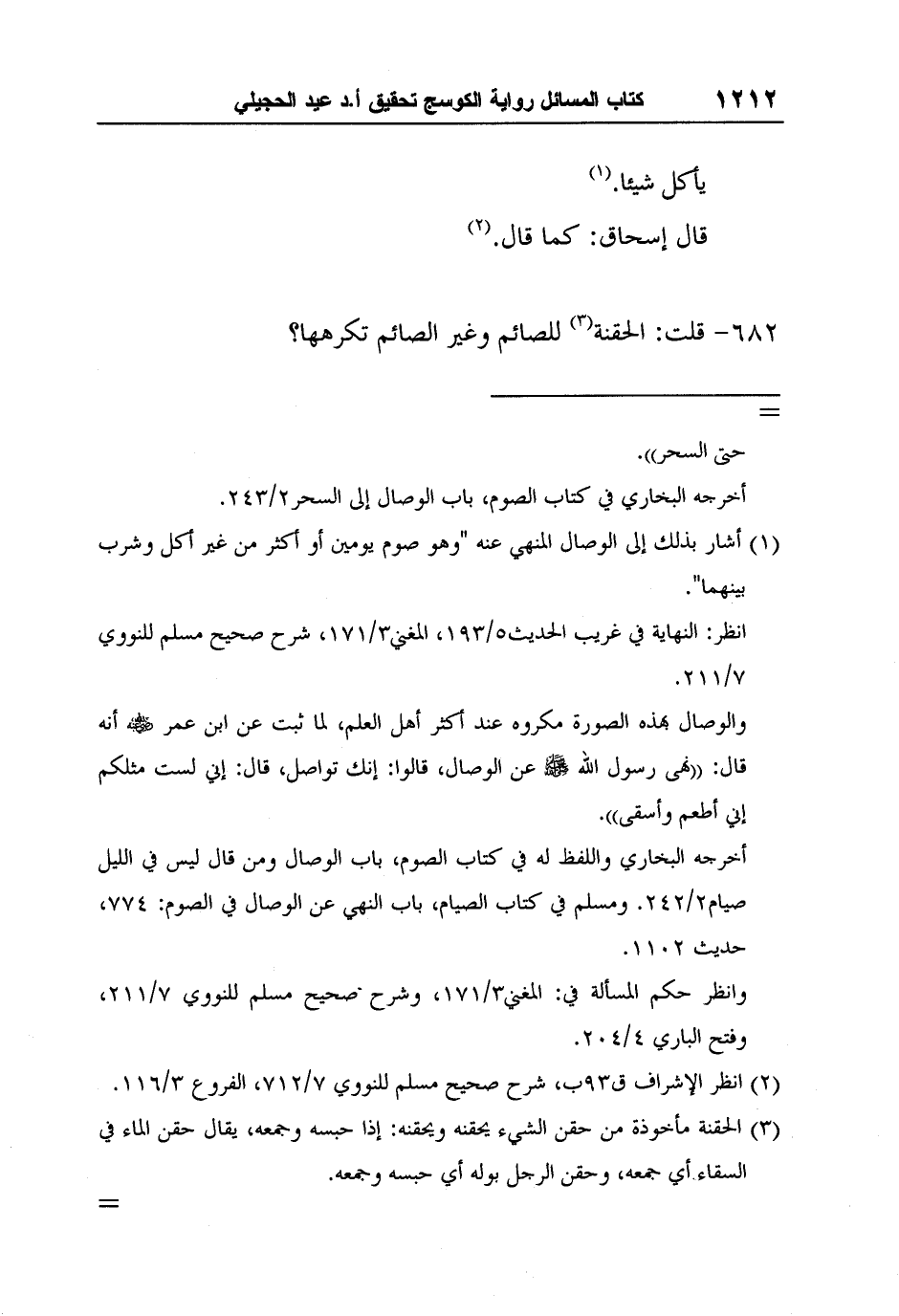 2 انظر الإشراف ق93ب، شرح صحيح مسلم للنووي 7/712، الفروع 3/116.