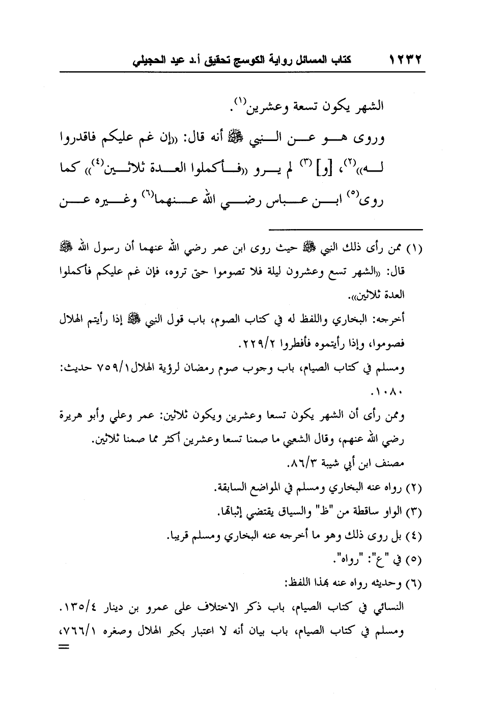 وممن رأى أن الشهر يكون تسعاً وعشرين ويكون ثلاثين: عمر وعلي وأبو هريرة رضي الله عنهم، وقال الشعبي ما صمنا تسعاً وعشرين أكثر مما صمنا ثلاثين.