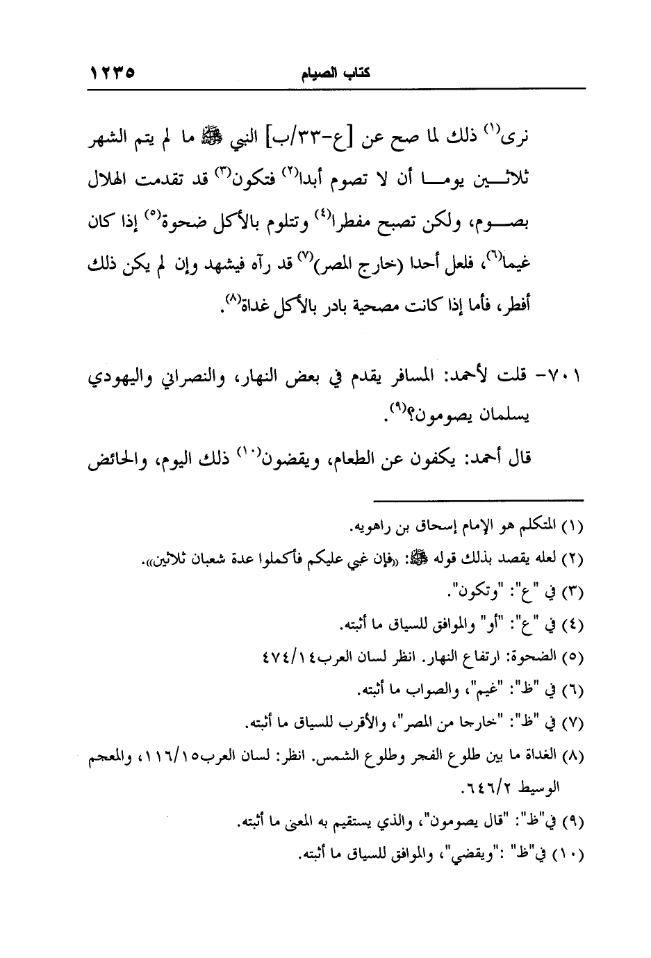 [701-] قلت لأحمد: المسافر يقدم في بعض النهار، والنصراني واليهودي يسلمان يصومون؟ 9.
