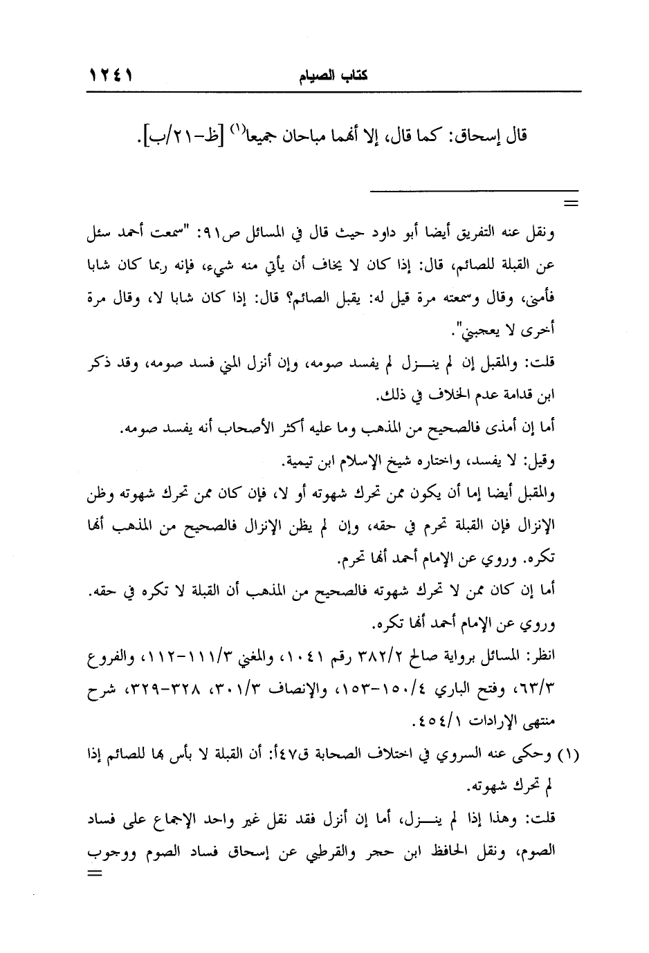 انظر: المغني 3/112، والجامع لأحكام القرآن 2/324، والفروع 3/49، وفتح الباري 4/151، 153.