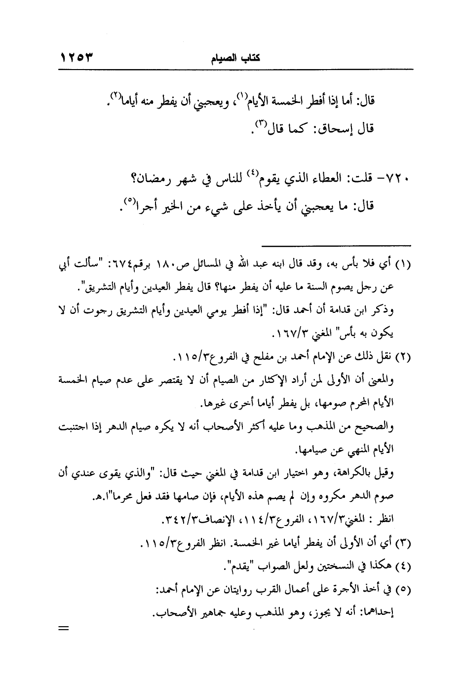 1 أي فلا بأس به، وقد قال ابنه عبد الله في المسائل ص180 برقم674: "سألت أبي عن رجل يصوم السنة ما عليه أن يفطر منها؟ قال يفطر العيدين وأيام التشريق".