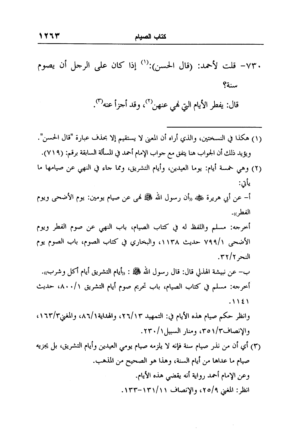 وانظر حكم صيام هذه الأيام في: التمهيد 13/26، والهداية1/86، والمغني3/163، والإنصاف3/351، ومنار السبيل1/230.