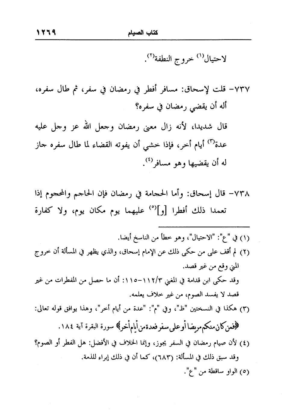 [738-] قال إسحاق: وأما الحجامة في رمضان فإن الحاجم والمحجوم إذا تعمدا ذلك أفطرا [و] 5 عليهما يوم مكان يوم، ولا كفارة