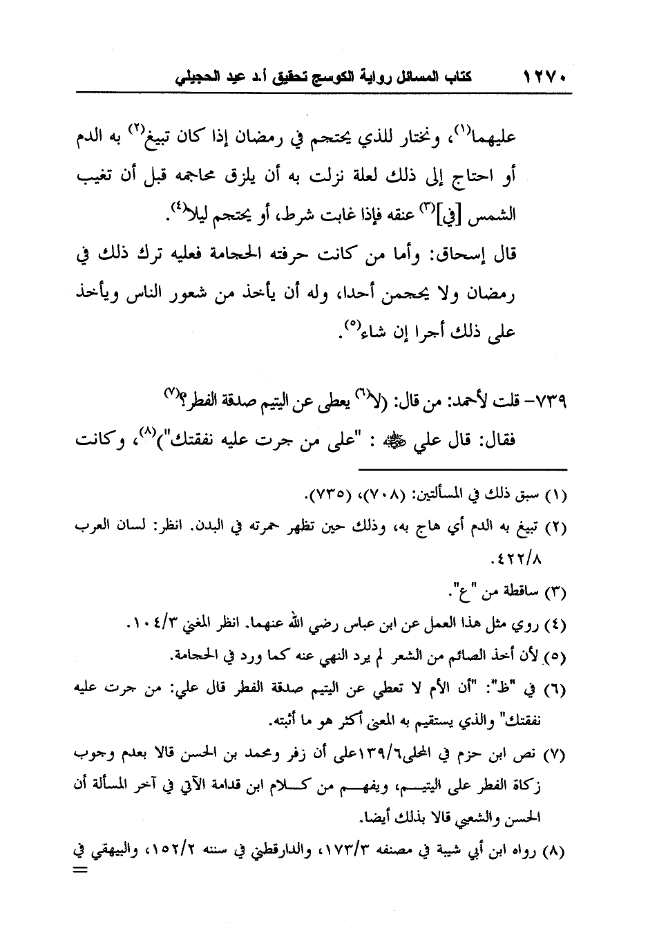 [739-] قلت لأحمد: من قال: (لا6 يعطى عن اليتيم صدقة الفطر؟ 7