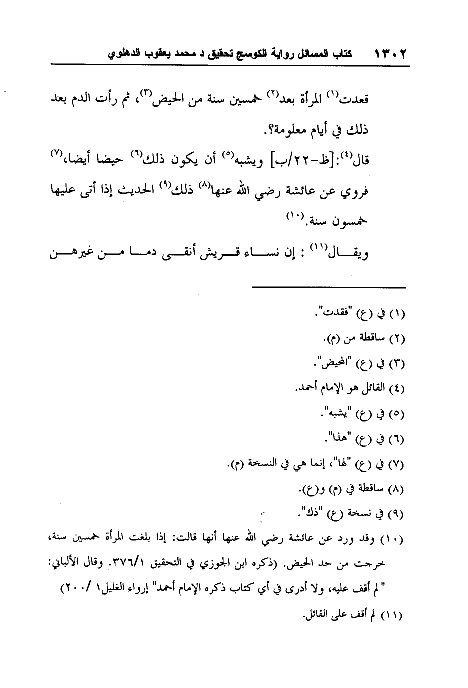 قال4: [ظ-22/ب] ويشبه5 أن يكون ذلك6 حيضاً أيضاً،7 فروي عن عائشة رضي الله عنها8 ذلك9 الحديث إذا أتى عليها خمسون سنة.10