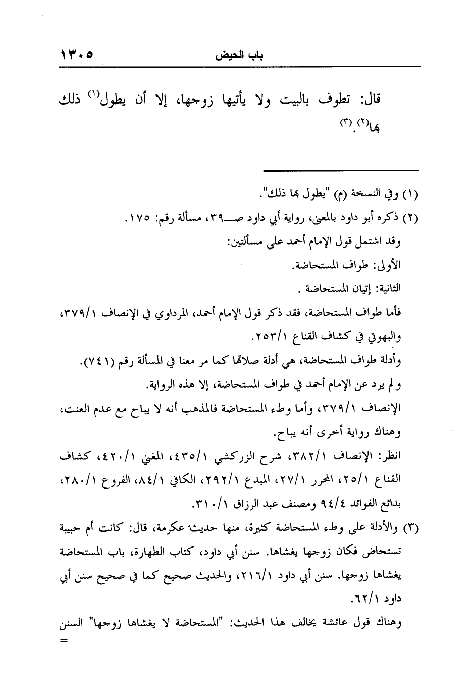 فأمّا طواف المستحاضة، فقد ذكر قول الإمام أحمد، المرداوي في الإنصاف 1/379، والبهوتي في كشاف القناع 1/253.