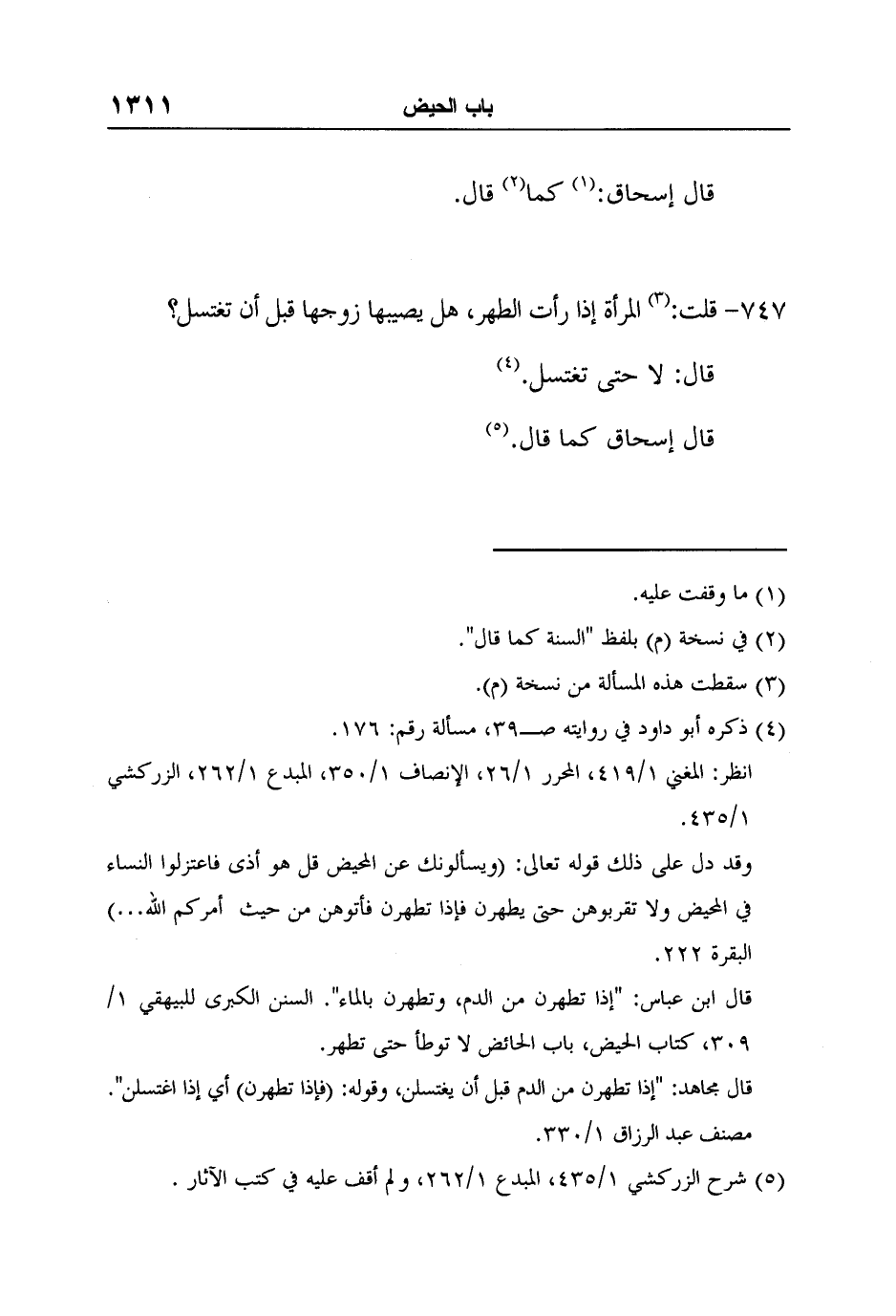 5 شرح الزركشي 1/435، المبدع 1/262، ولم أقف عليه في كتب الآثار.