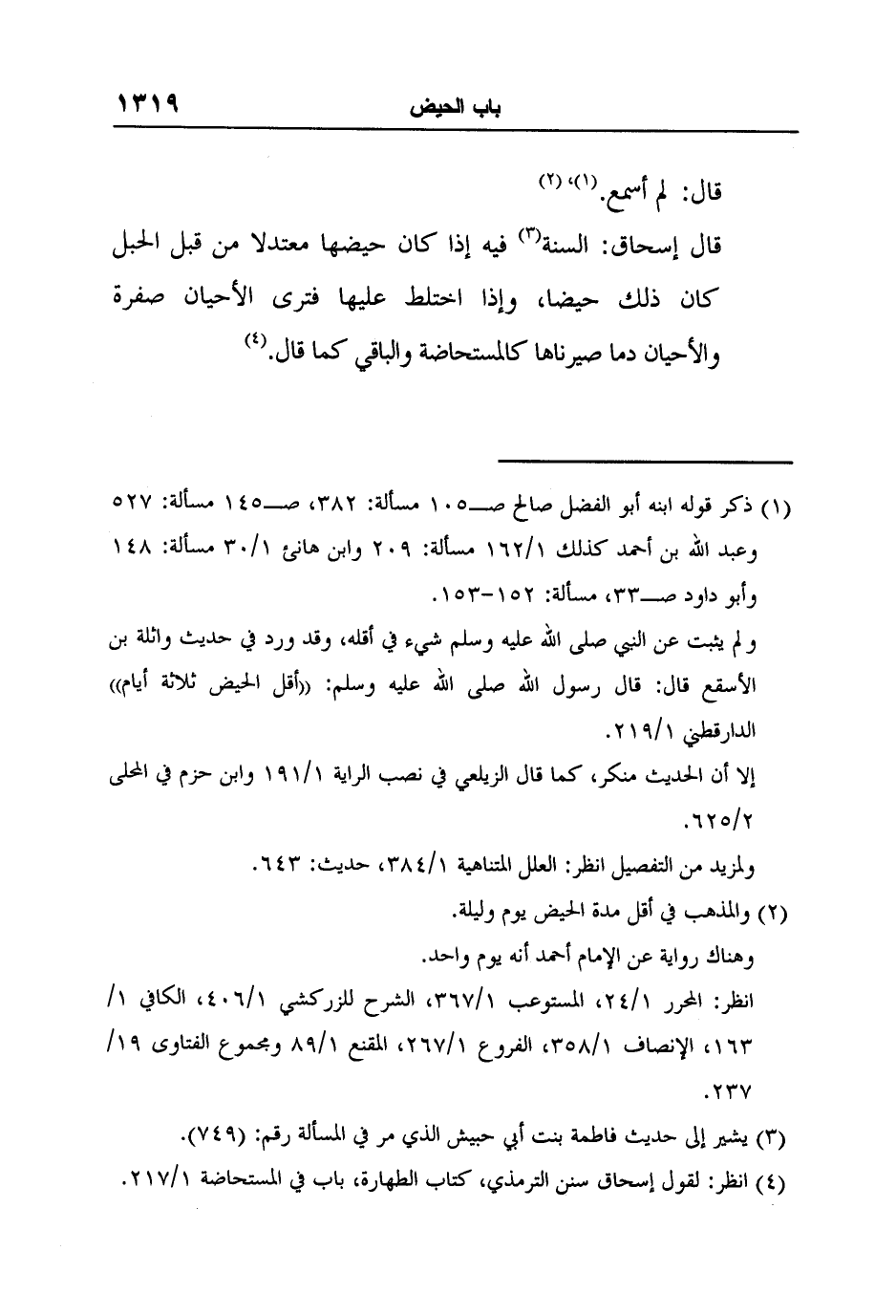 4 انظر: لقول إسحاق سنن الترمذي، كتاب الطهارة، باب في المستحاضة 1/217.