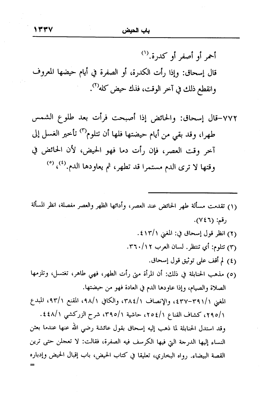 [772-] قال إسحاق: والحائض إذا أصبحت فرأت بعد طلوع الشمس طهراً، وقد بقي من أيّام حيضتها فلها أن تتلوم3 تأخير الغسل إلى آخر وقت العصر، فإن رأت دماً فهو الحيض، لأنّ الحائض في وقتها لا ترى الدم مستمرّاً قد تطهر، ثمّ يعاودها الدم.4، 5