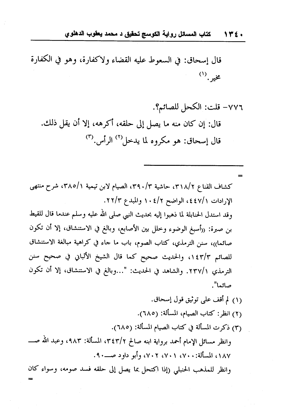 3 ذكرت المسألة في كتاب الصيام المسألة: (685) .