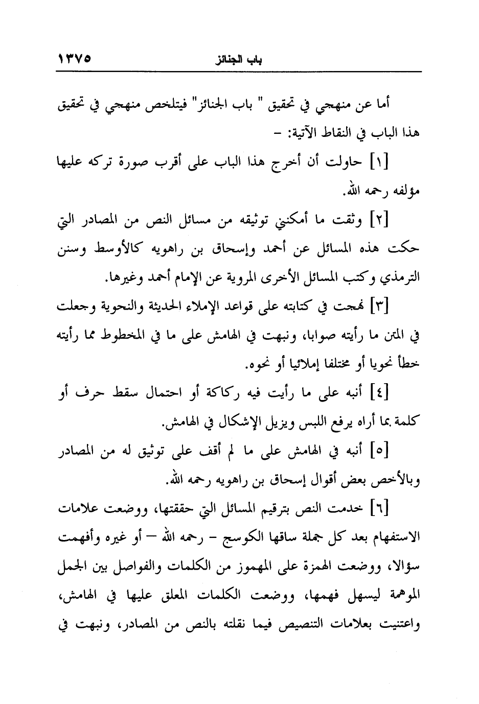 أما عن منهجي في تحقيق " باب الجنائز" فيتلخص منهجي في تحقيق هذا الباب في النقاط الآتية: