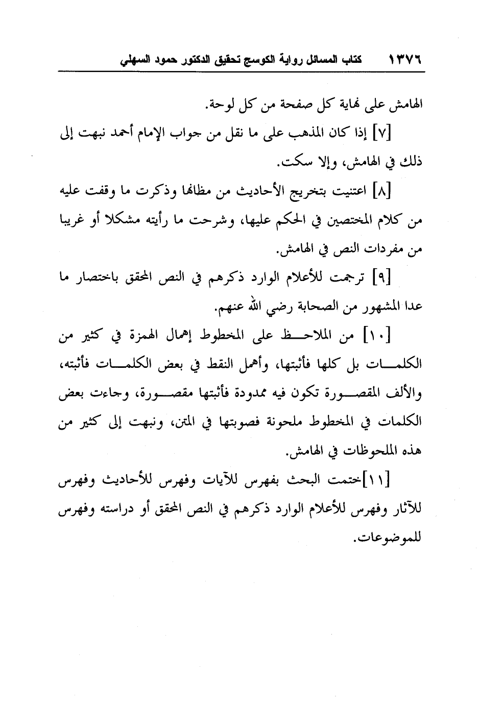 [11] ختمت البحث بفهرس للآيات وفهرس للأحاديث وفهرس للآثار وفهرس للأعلام الوارد ذكرهم في النص المحقق أو دراسته وفهرس للموضوعات.