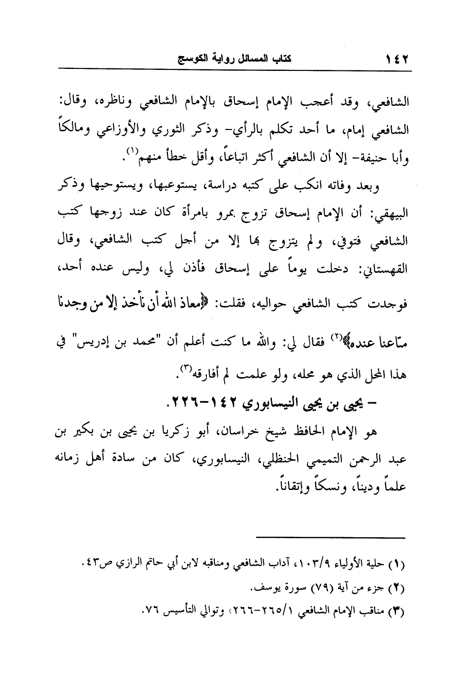 1 حلية الأولياء 9/103، آداب الشافعي ومناقبه لابن أبي حاتم الرازي ص43.