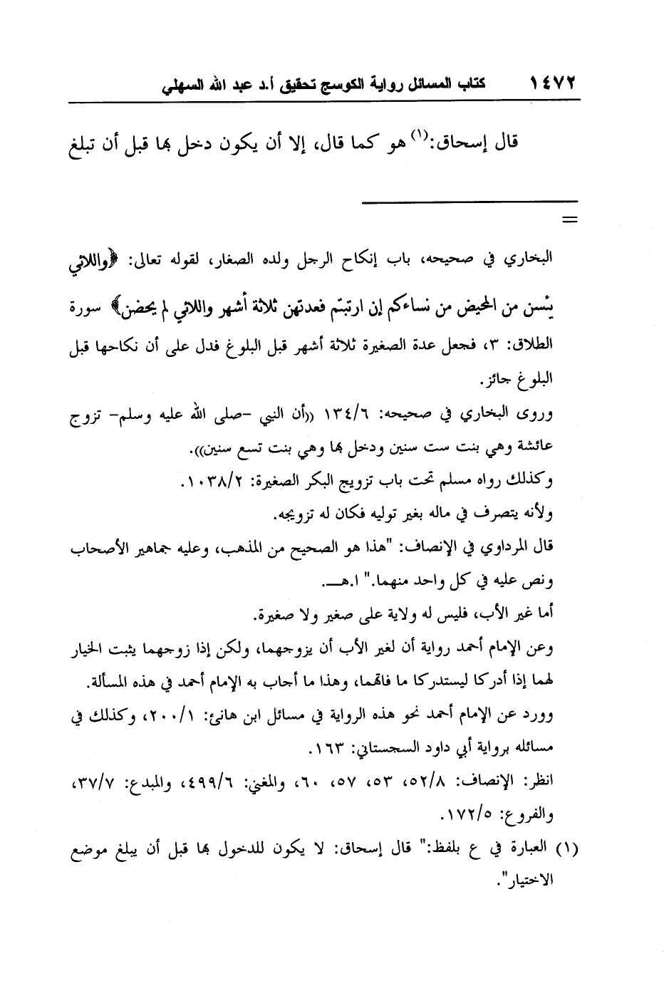قال إسحاق:1 هو كما قال، إلا أن يكون دخل بها قبل أن تبلغ