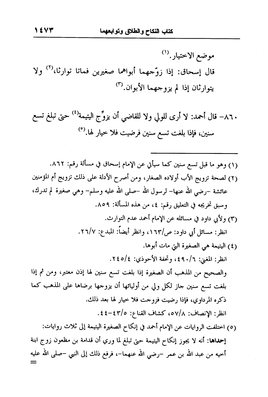 5 اختلفت الروايات عن الإمام أحمد في إنكاح الصغيرة اليتيمة إلى ثلاث روايات: