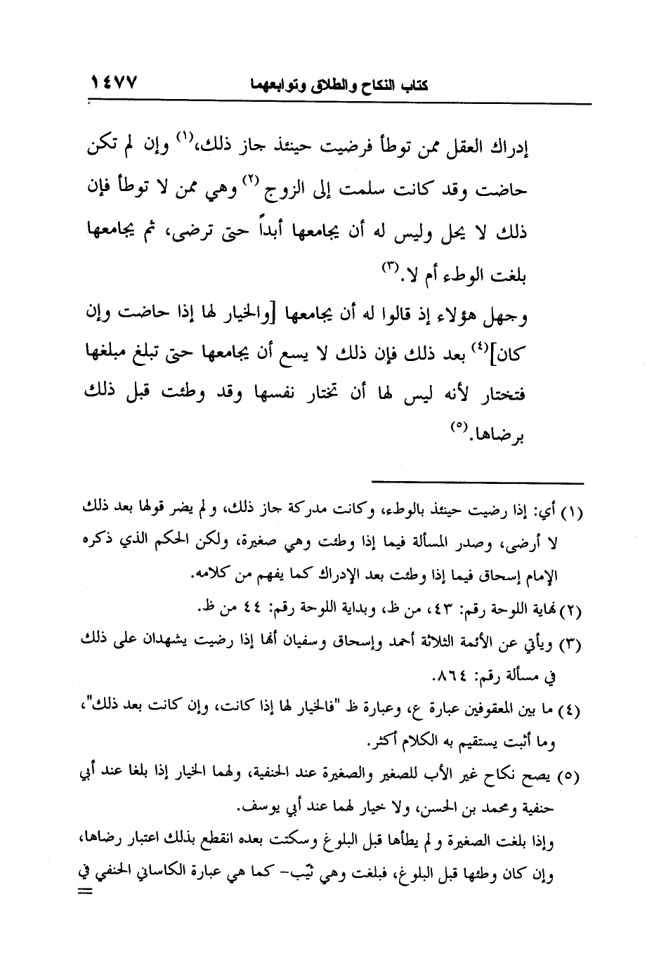 1 أي: إذا رضيت حينئذ بالوطء، وكانت مدركة جاز ذلك، ولم يضر قولها بعد ذلك لا أرضى، وصدر المسألة فيما إذا وطئت وهي صغيرة، ولكن الحكم الذي ذكره الإمام إسحاق فيما إذا وطئت بعد الإدراك كما يفهم من كلامه.
