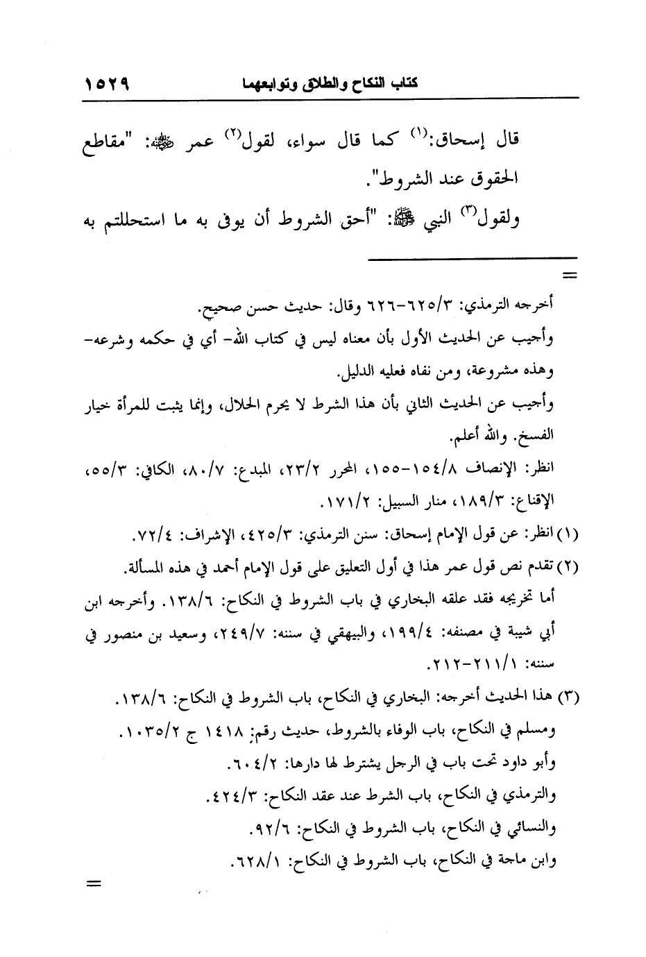 قال إسحاق:1 كما قال سواء، لقول2 عمر رضي الله عنه: "مقاطع الحقوق عند الشروط".