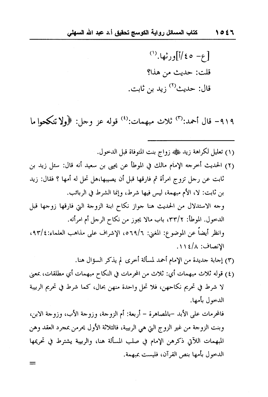 [919-] قال أحمد:3 ثلاث مبهمات:4 قوله عز وجل: {وَلا تَنْكِحُوا مَا