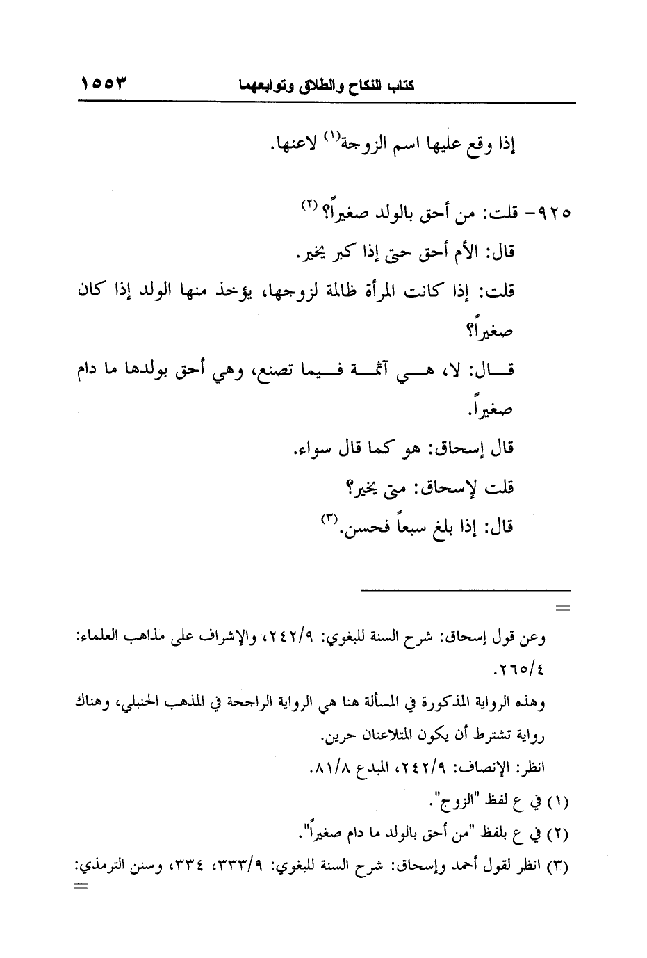 3 انظر لقول أحمد وإسحاق: شرح السنة للبغوي: 9/333، 334، وسنن الترمذي: 3/639، والمغني 7/612، والمحلى 7/323.