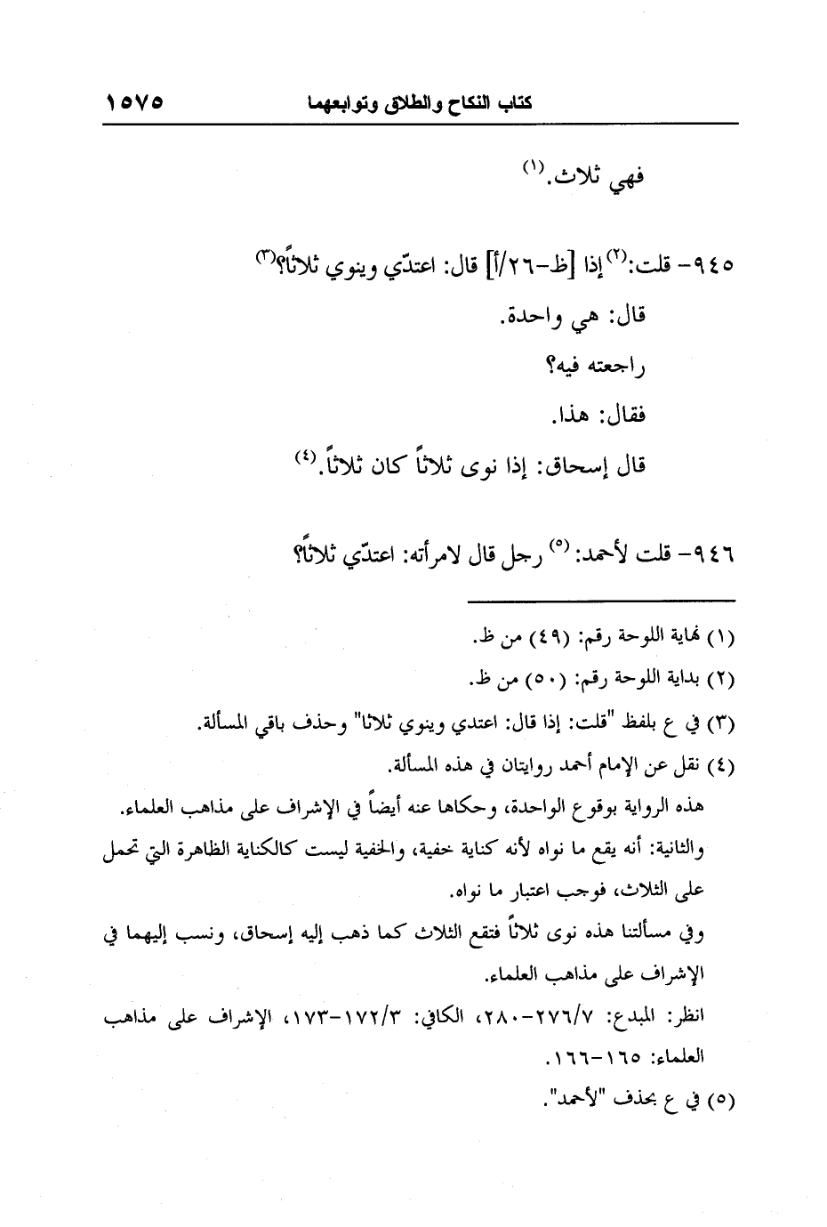 [946-] قلت لأحمد: 5 رجل قال لامرأته: اعتدّي ثلاثاً؟