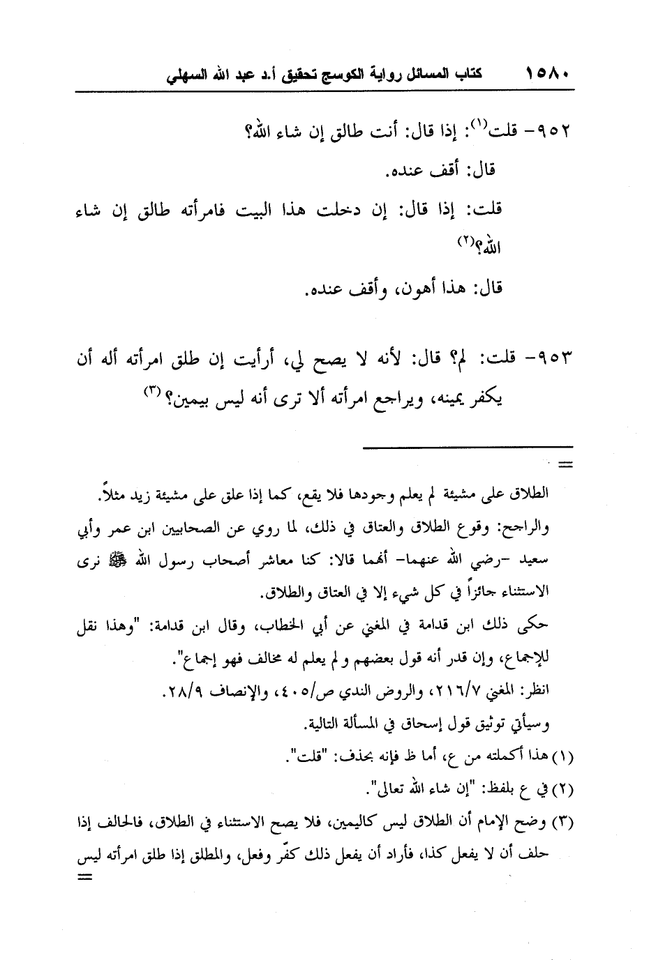 قلت: إذا قال: إن دخلت هذا البيت فامرأته طالق إن شاء الله؟ 2