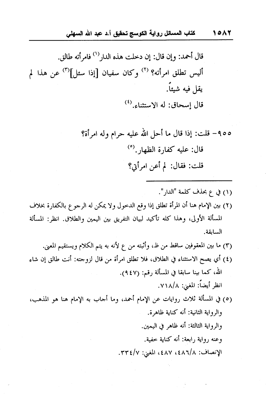 أليس تطلق امرأته؟ 2 وكان سفيان [إذا سئل] 3 عن هذا لم يقل فيه شيئاً.