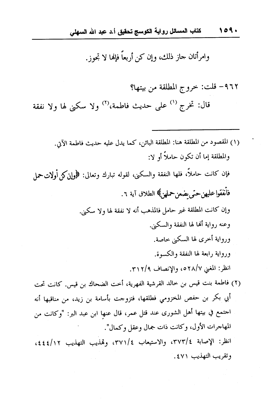 [962-] قلت: خروج المطلقة من بيتها؟
