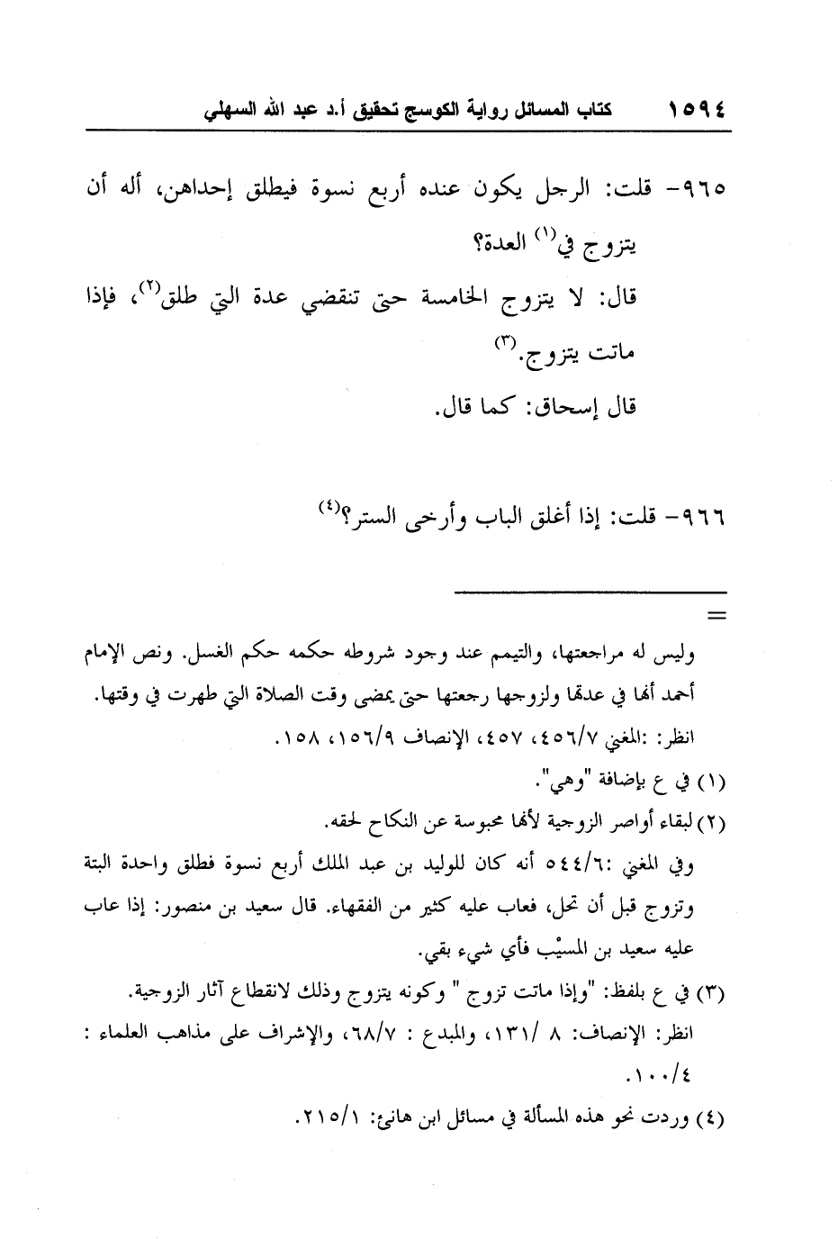 4 وردت نحو هذه المسألة في مسائل ابن هانئ: 1/215