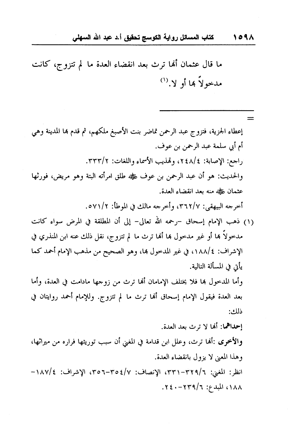[] انظر: المغني: 6/329-331، الإنصاف: 7/354-356، الإشراف: 4/187-188، المبدع: [6/239-240.