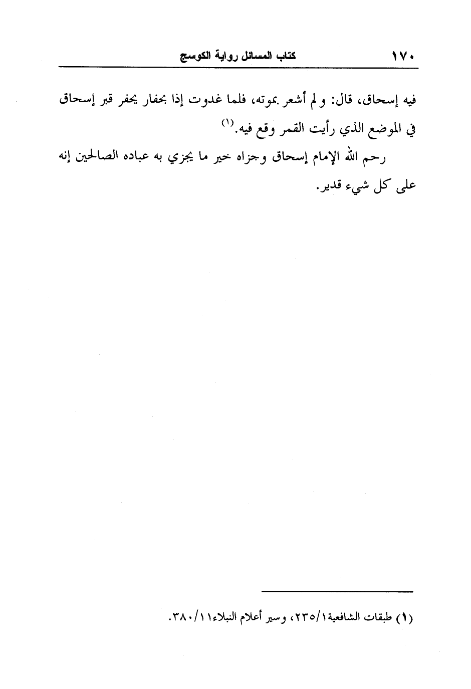 رحم الله الإمام إسحاق وجزاه خير ما يجزي به عباده الصالحين إنه على كل شيء قدير.