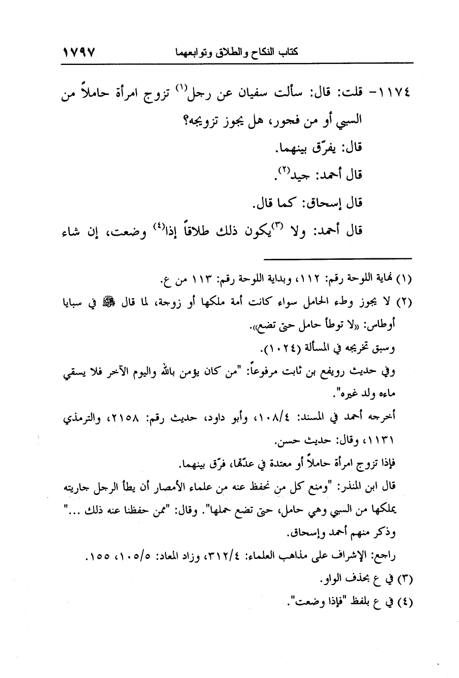 [1174-] قلت: قال: سألت سفيان عن رجل1 تزوج امرأة حاملاً من السبي أو من فجور، هل يجوز تزويجه؟