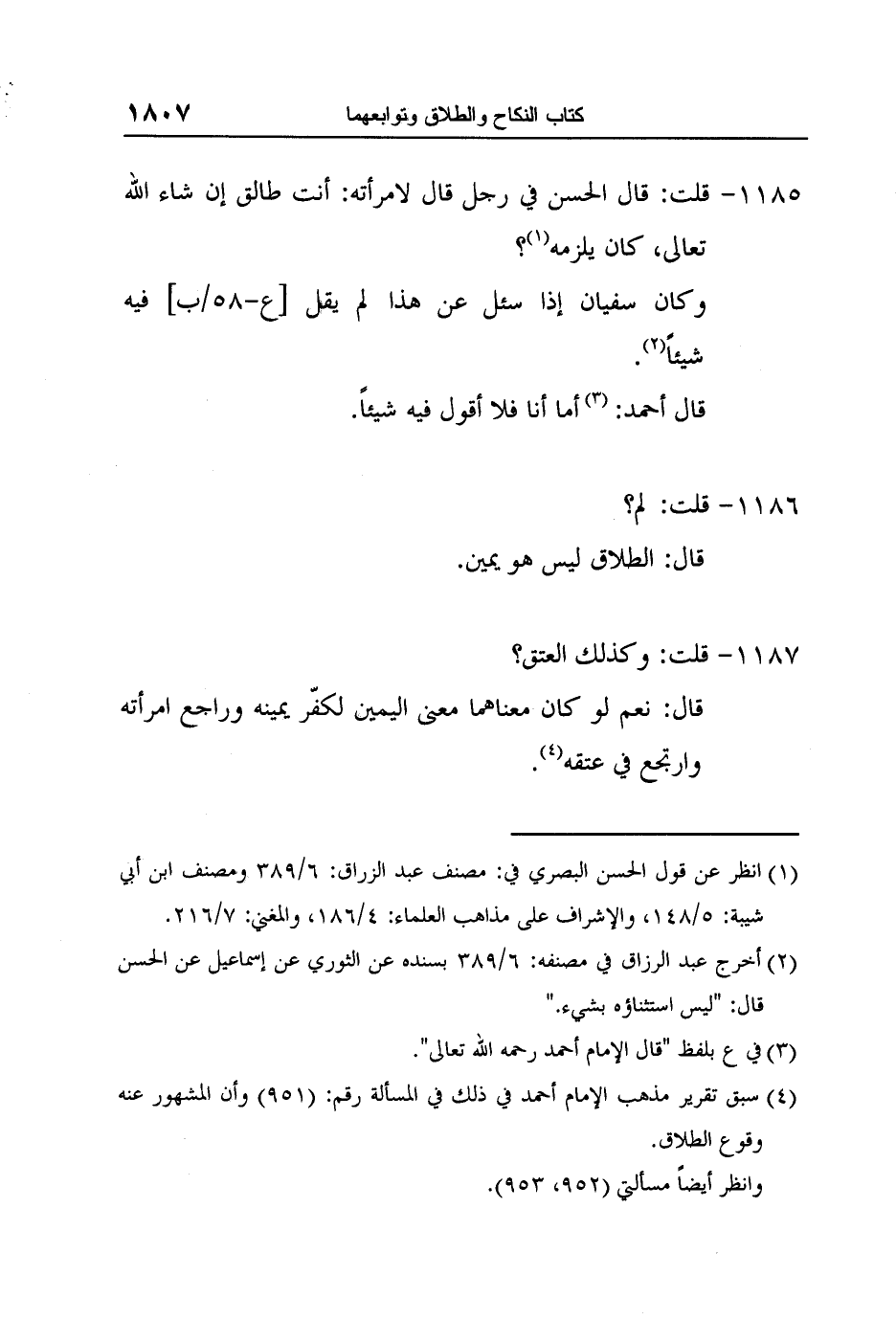 1 انظر عن قول الحسن البصري في: مصنف عبد الزراق: 6/389 ومصنف ابن أبي شيبة: 5/148, والإشراف على مذاهب العلماء: 4/186, والمغني: 7/216.