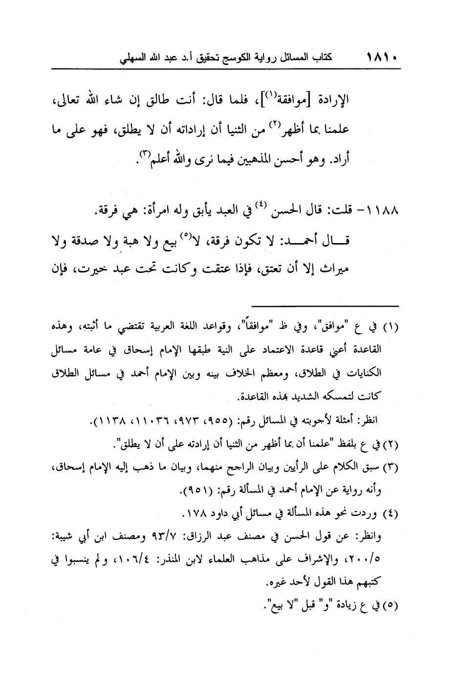 4 وردت نحو هذه المسألة في مسائل أبي داود 178.