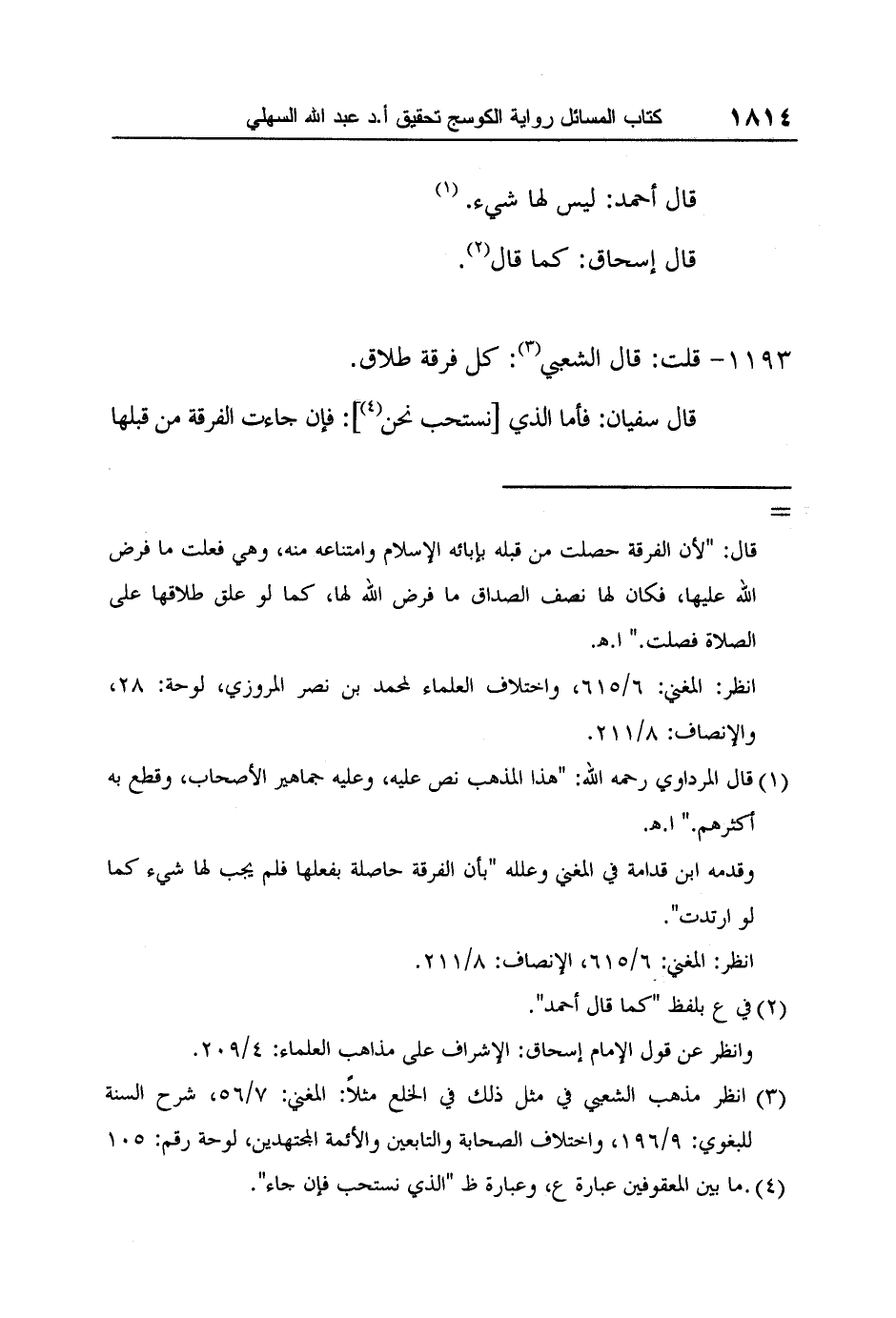 3 انظر مذهب الشعبي في مثل ذلك في الخلع مثلاً: المغني: 7/56, شرح السنة للبغوي: 9/196, واختلاف الصحابة والتابعين والأئمة المجتهدين، لوحة رقم: 105.