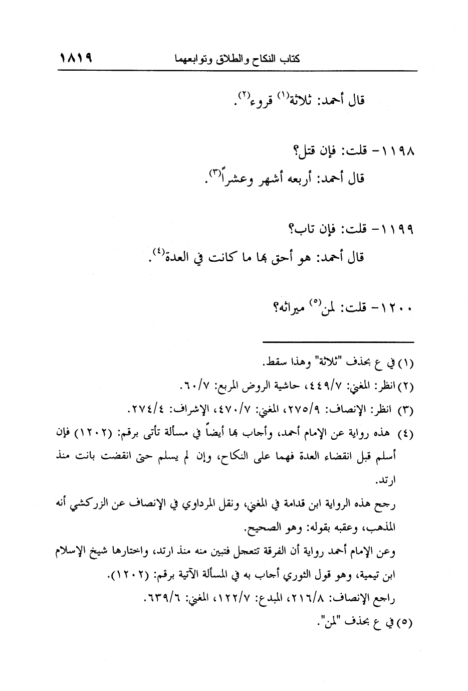 3 انظر: الإنصاف: 9/275, المغني: 7/470, الإشراف: 4/274.
