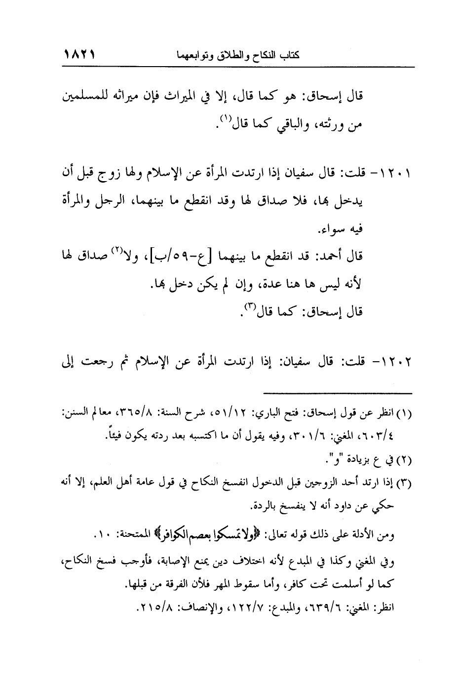 1 انظر عن قول إسحاق: فتح الباري: 12/51, شرح السنة: 8/365, معالم السنن: 4/603, المغني: 6/301، وفيه يقول أن ما اكتسبه بعد ردته يكون فيئاً.