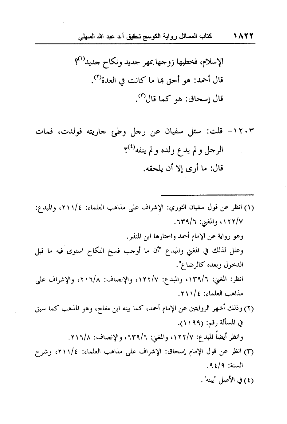 1 انظر عن قول سفيان الثوري: الإشراف على مذاهب العلماء: 4/211, والمبدع: 7/122, والمغني: 6/639.