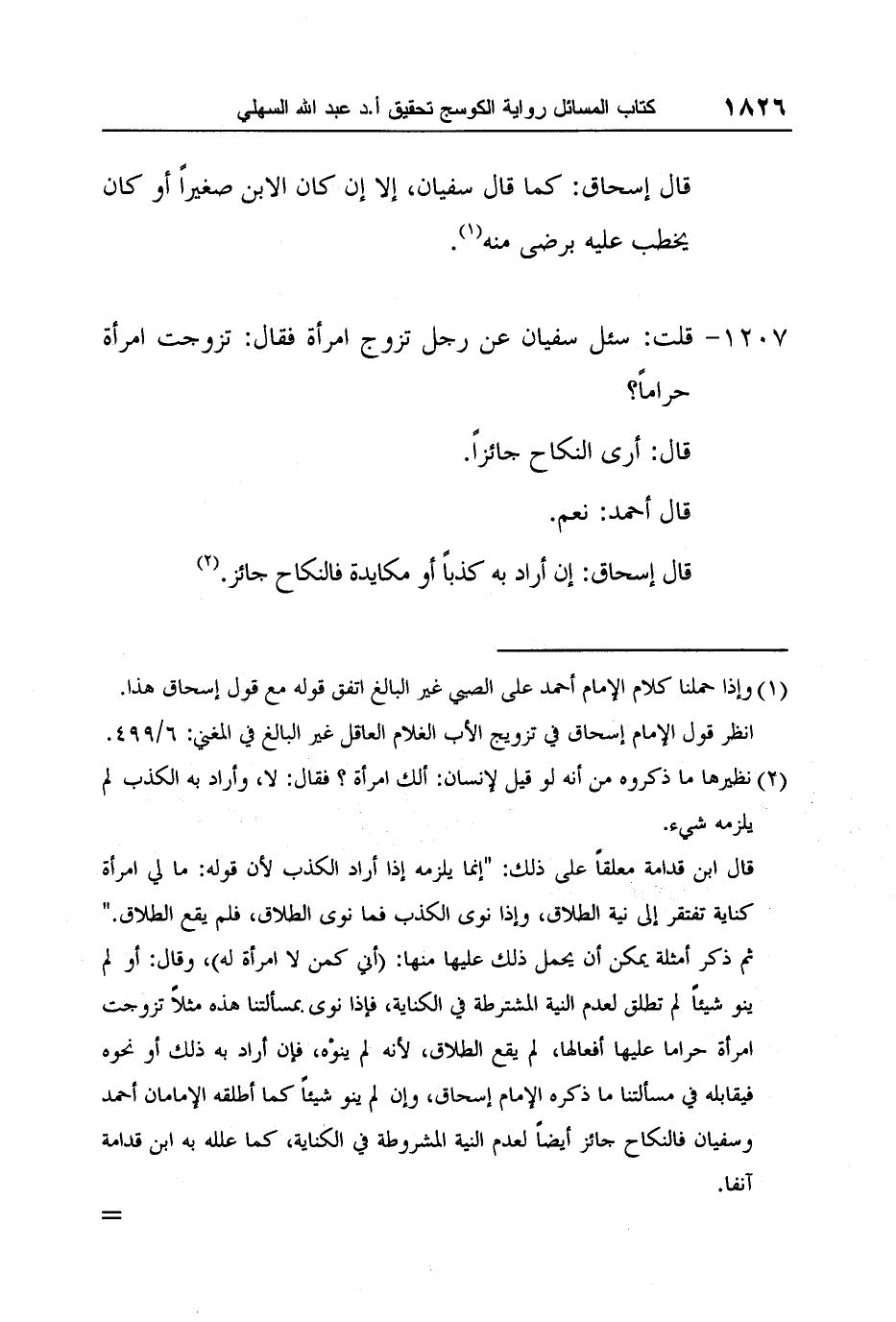 1 وإذا حملنا كلام الإمام أحمد على الصبي غير البالغ اتفق قوله مع قول إسحاق هذا.