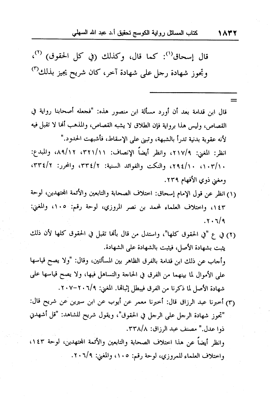 1 انظر عن قول الإمام إسحاق: اختلاف الصحابة والتابعين والأئمة المجتهدين، لوحة 143، واختلاف العلماء لمحمد بن نصر المروزي، لوحة رقم: 105، والمغني: 9/206.