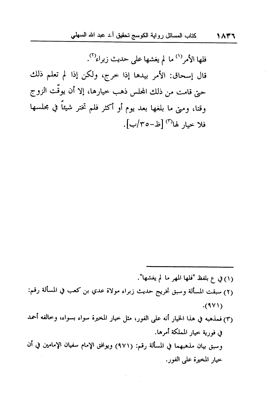3 فمذهبه في هذا الخيار أنه على الفور، مثل خيار المخيرة سواء بسواء، وخالفه أحمد في فورية خيار المملكة أمرها.